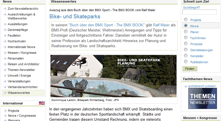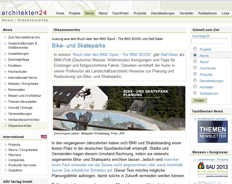 Bei dem Onlinemagazin ‚architekten24.de‚ gibt es aktuell ein Interview mit Ralf Maier über sein THE BMX BOOK Projekt zu lesen.
