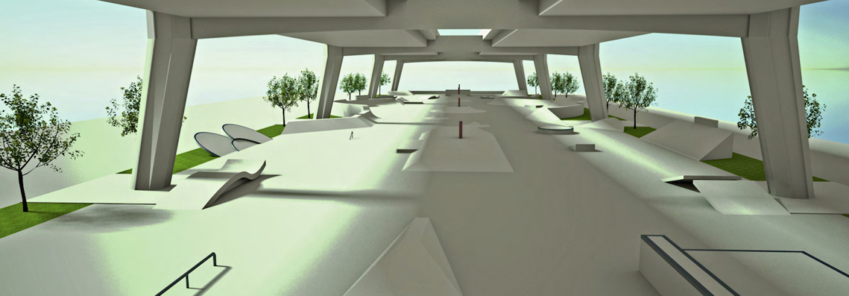 Unter der neugebauten Brücke von König Hassan II wird in Rabat ein ca. 4000 m² großer Skatepark aus Beton entstehen.
