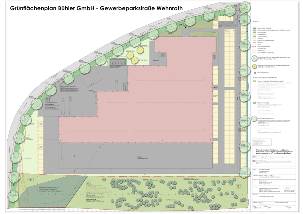 Für das Unternehmen Vollack GmbH (Spezialist für Hallen und Stahl bau) wurden für das Projekt in Köln und Reichshof die Genehmigungsplanung/ den Grünflächenplan für die Außenanlagen erstellt.