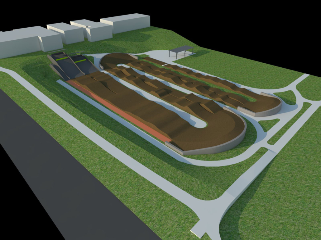 Ein alter Tennen-Sportplatz dient dafür als Fläche. In einem intensiven Planungsprozess wurden die Wünsche des Vereins und die internationalen Streckenanforderungen zusammen gebracht. Das Ergebnis ist eine anspruchsvolle und abwechslungsreiche BMX-Race Strecke.
