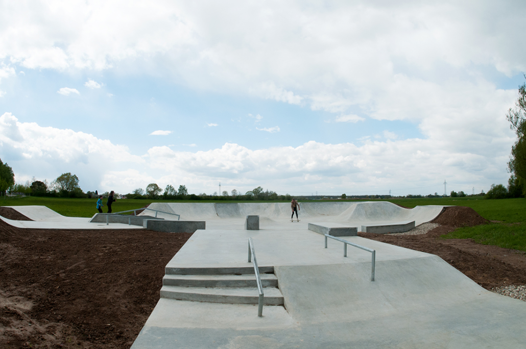 In mehreren Workshops – der Nutzerbeteiligung – mit den Kindern und Jugendlichen der Stadt Offenburg sowie dem Jugendbüro Offenburg ist dieses spannende Design entstanden. Die Anlage ist so konzipiert, dass eine zentrale Verteilerrampe die Möglichkeit bietet in alle Richtungen zu skaten. Die unterschiedlich ausgebildeten Arme bieten Skatern und BMX Fahrern Fahrspaß mit Streetcharackter. Rails, Flatrails, Curbs und Ledges sind in den streetlastigen Skatepark integriert.