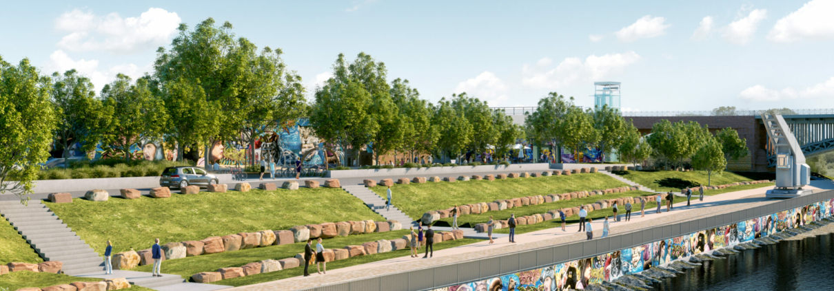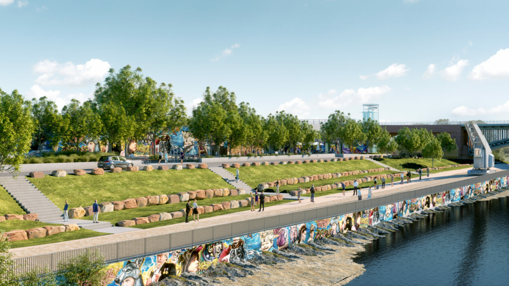 Neben dem geplanten Skatepark wird es eine Parkour und Freerunning Fläche, Sitzstufen aus Stein, eine Liegewiese, eine Kletterwand, einen Spielplatz, eine Graffitiwand und viele weitere Angebote zum verweilen geben. Ziel des Projektes ist einen attraktiven, multifunktionalen Ort für unterschiedliche Nutzergruppen zu schaffen.