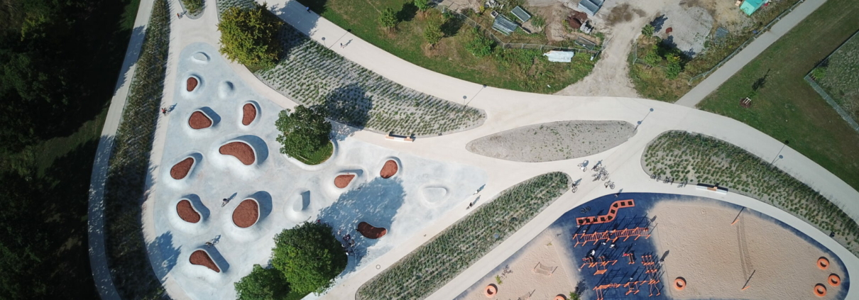 Auf einer Gesamtfläche von ca. 1600 m² ist eine freigeformte und freimodellierte Betonlandschaft entstanden, auf der Jung und Alt ihren Spaß haben können.