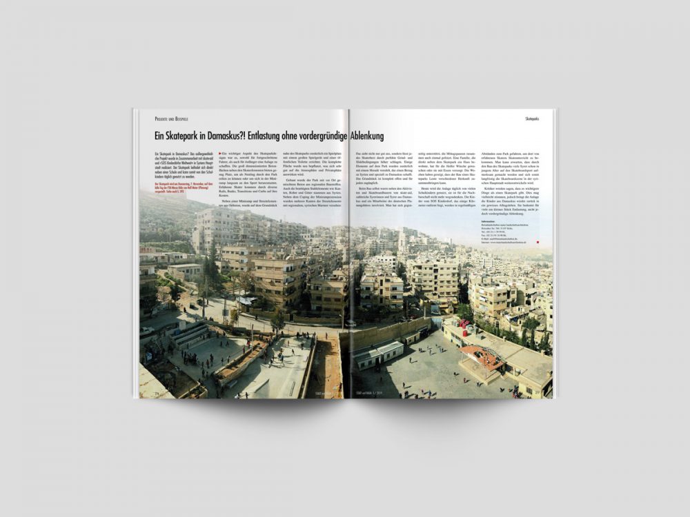 Die Fachzeitschrift Stadt und Raum hat in ihrer Ausgabe 05.19 unseren Skatepark in Damskus auf ihrem Titel und einem doppelseitigem Artikel vorgestellt.