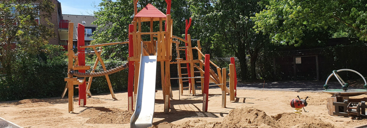 Der bestehende Spielplatz wurde 2018 als Ausweichfläche für Neubau der Kita St. Elisabeth benutzt und wird nun wieder neu hergestellt.