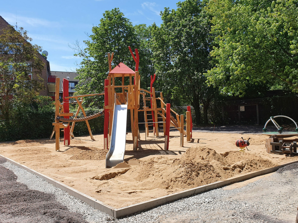 Der bestehende Spielplatz wurde 2018 als Ausweichfläche für Neubau der Kita St. Elisabeth benutzt und wird nun wieder neu hergestellt.