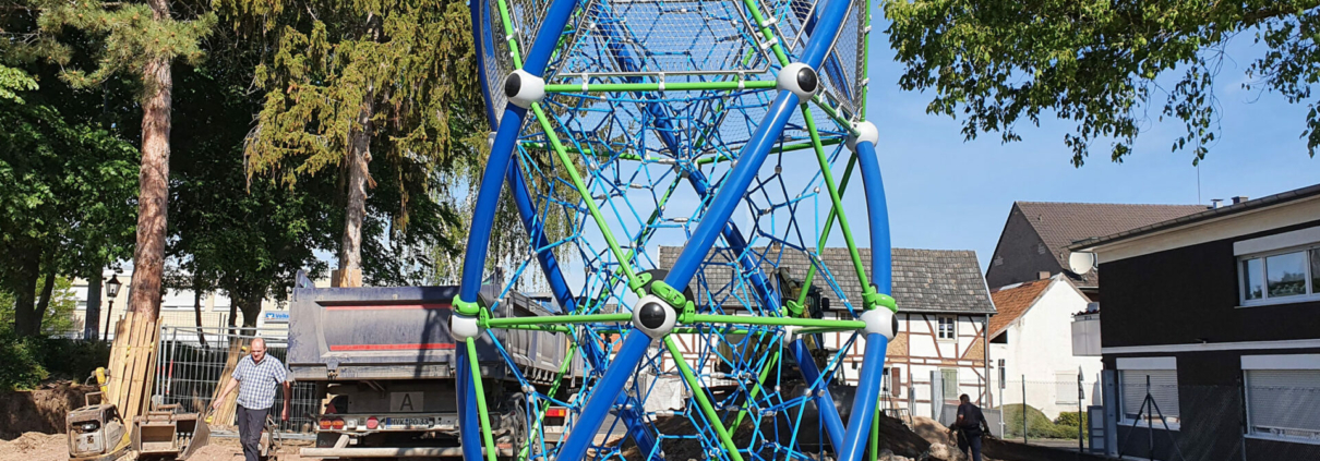 Der Kletterturm der Firma Berliner Seilfabrik steht bereits.