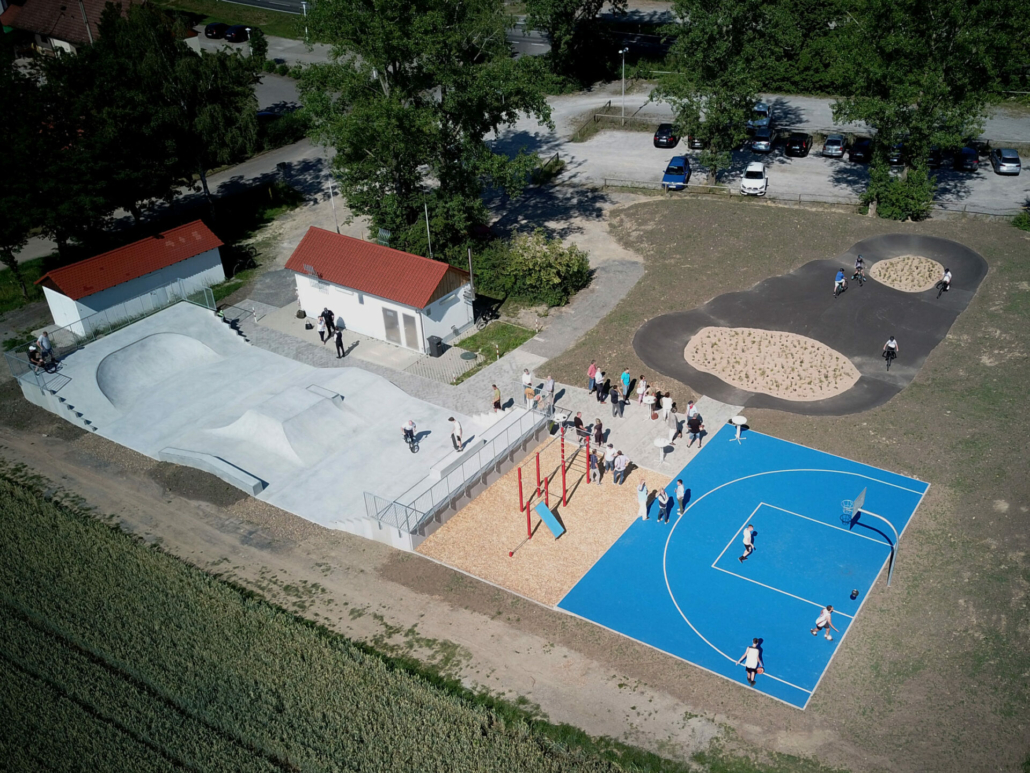 Für die Stadt Gerolzhofen haben wir eine Multifunktionsanlage geplant, mit einer Skaterfläche, Streetballbereich, Callestenics und einem Pumptrack.