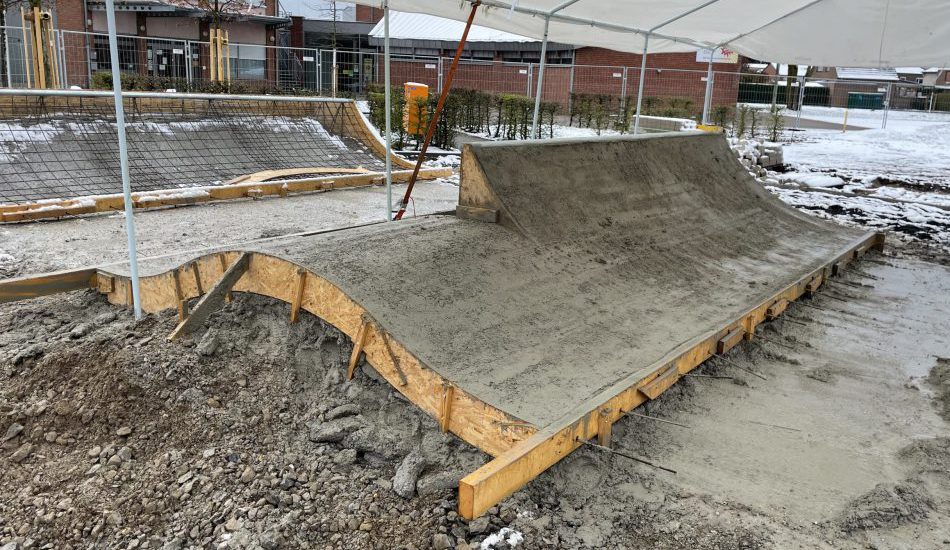 Der Bau des Skatepark in Kevelaer geht, trotz leichter Schneefälle, gut voran. Es wurden neben weiteren Schalungs- und Stahlarbeiten wieder ein neues Element betoniert. Die Spineramp mit Wobble sind bereits zu zwei Dritteln fertiggestellt.