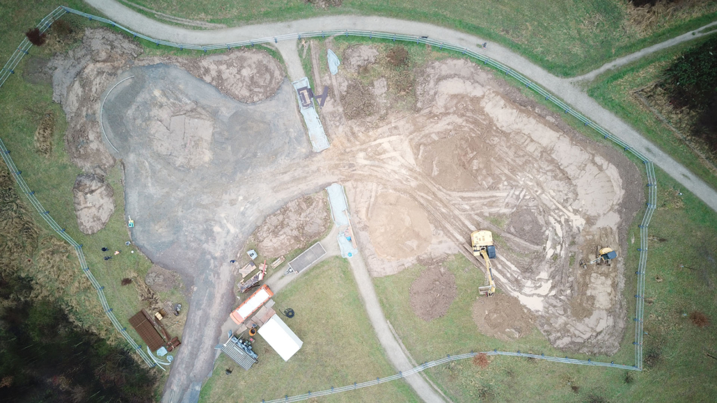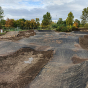 In Meerbusch nimmt der neue Skatepark und Pumptrack seine ersten Konturen an. Das Coping der Kidneybowl und anderer „Obstacles“ wurden bereits gesetzt.