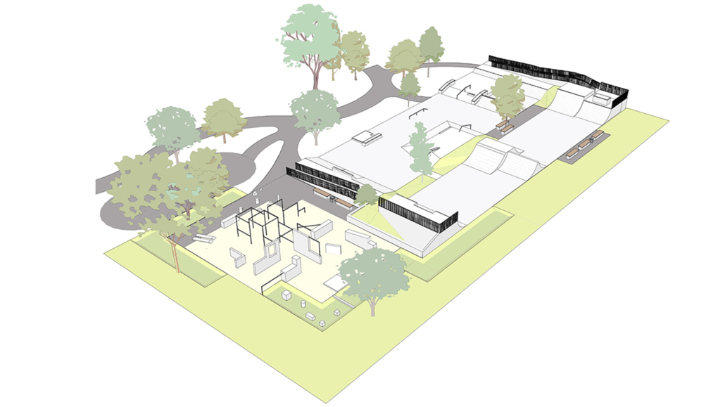 Neben einem Skatepark, einer Jumpline für BMX, einer Calisthenics und Pakouranlage, wird auch einen Pumptrack mit Kidstrack entstehen.
