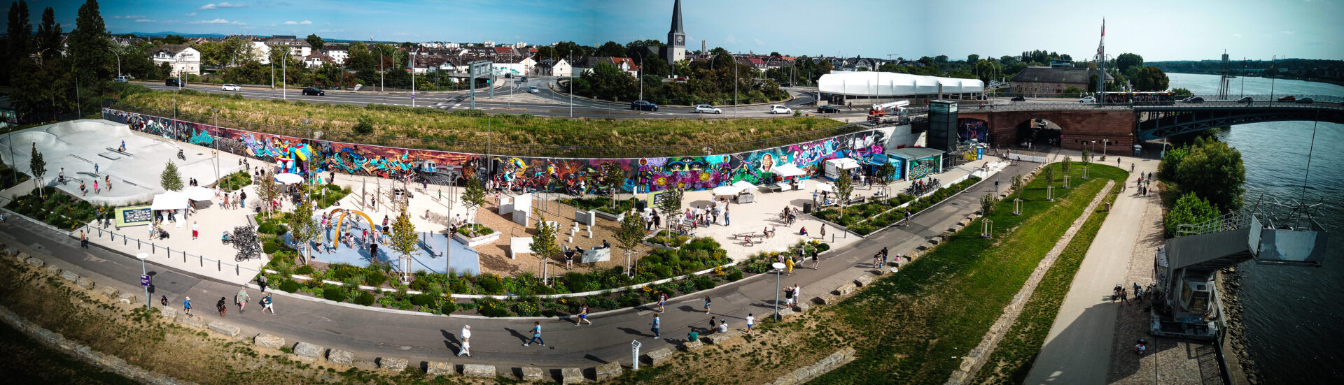 [ngg src=“galleries“ ids=“391″ display=“basic_imagebrowser“][:en]The largest recreational facility of its kind was now also ceremoniously opened as part of a summer festival since the opening took place with little audience in the snow flurry. The Kasteler Rheinufer in Wiesbaden has long been a popular meeting place for young and old. It is already known for the coexistence of families walking, young people playing sports, musicians* under the bridge, salsa dance nights or car tuning and graffiti enthusiasts.