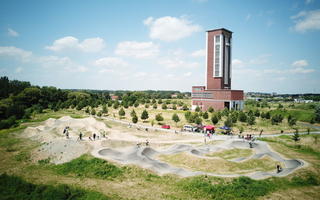 On the former site of the Königsborn III/IV colliery in 59199 Bönen there was an existing dirt jump facility that was no longer in use. This facility was modernized and supplemented by a pump track with an asphalt surface. Due to the good rolling properties of the asphalt, the range of users (bikers, skaters, longboarders, scooter riders, wheelchair users and inline skaters) has been expanded.
