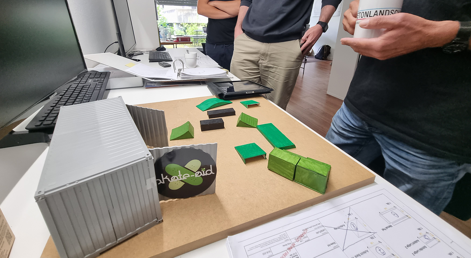 „Skatepark in a Box“ ist das Ergebnis der Zusammenarbeit zwischen der skate-aid, Kukuk und maier Landschaftsarchitektur.