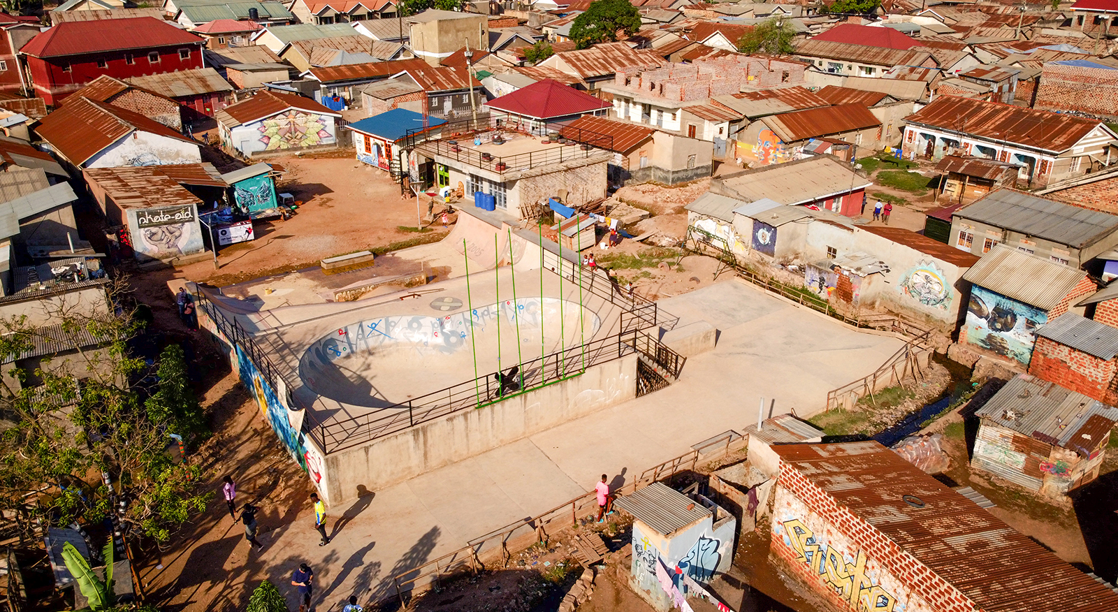 Im Kinitale Township, einer 20.000-Einwohner-Gemeinde am Viktoriasee, wurde der bestehende Skatepark der Uganda Skateboard Union (USU) zu einer modernen Multifunktionsanlage mit Community Center erweitert. Die schrittweise Entwicklung der Anlage begann 2021 mit der Eröffnung der Skullbowl – einer oberirdischen Konstruktion, die den anspruchsvollen Grundwasserbedingungen vor Ort Rechnung trägt.
