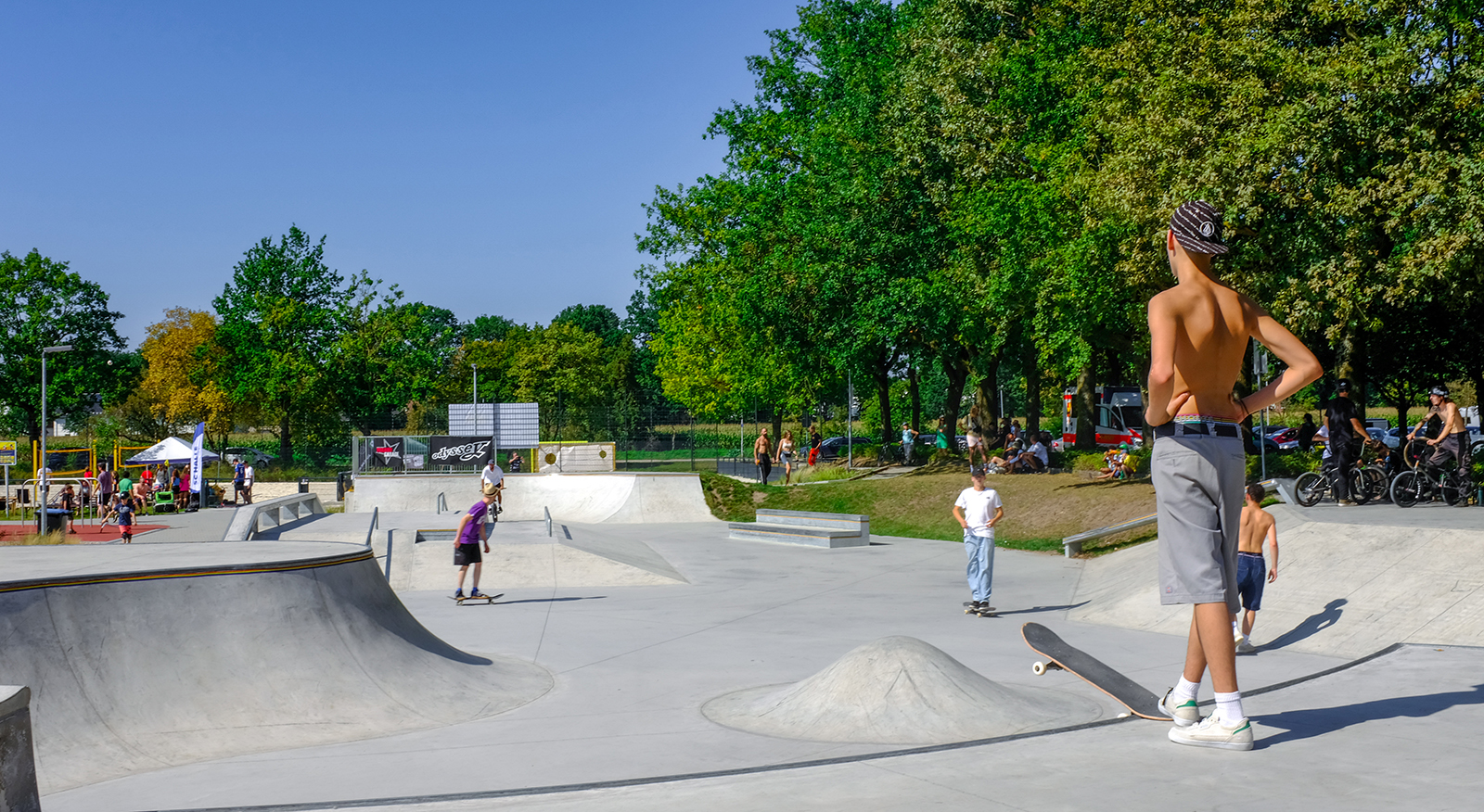 Der 830 m² große Skatebereich bietet Skatern, BMX-Fahrern, Inlineskatern und Scooter-Nutzern eine durchdachte Kombination aus flächiger Betonbahn und herausfordernden Aufbauten. Elemente speziell für den WCMX-Sport wurden mit im engen Austausch mit Rollstuhlsportlern geplant und hergestellt. Ergänzt wird das Angebot durch eine 310 m² große Calisthenics- und Parkour-Zone mit Mauerelementen, speziellen Stahlkonstruktionen und einem Schutzbelag für sichereres Training. Ein bestehender Beachvolleyballplatz wurde ebenfalls geschickt in das Gesamtkonzept integriert.