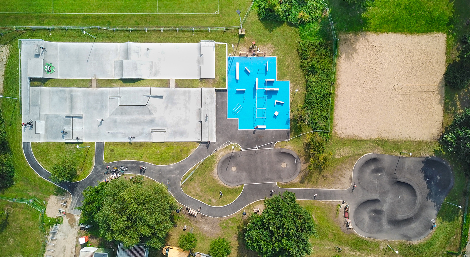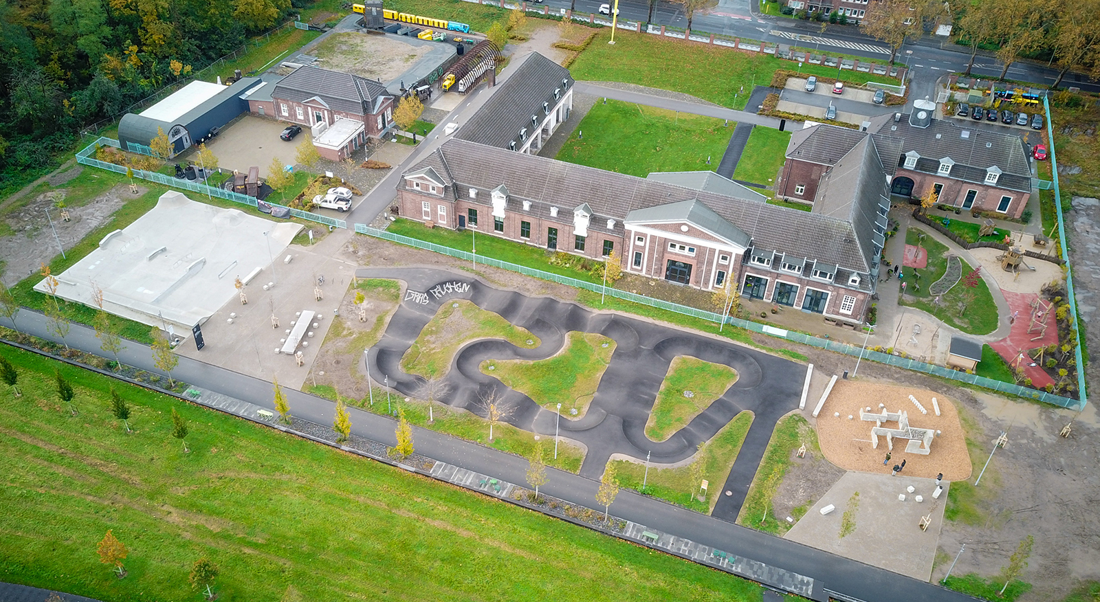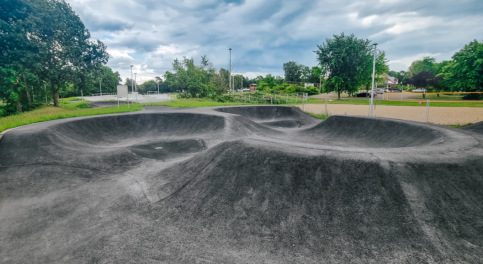 Im Zechenpark Kamp-Lintfort wurde eine innovative Mehrzweckanlage geschaffen, die auf 3.300 Quadratmetern verschiedenste Bewegungsangebote vereint. Die Anlage umfasst einen Pumptrack, einen separaten Kids-Pumptrack, einen vielseitigen Skatebereich sowie eine Parkour-Anlage und verbindet sich harmonisch mit dem historischen Schirrhof, einem benachbarten Familien- Bildungs- und Kulturzentrum.