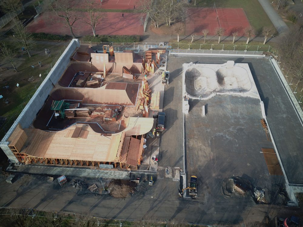 Ende Oktober begann die Firma Populär aus Nürnberg mit den Betonarbeiten und gleichzeitig werden durch die Firma Gedo Skateparks die Rampen montiert.